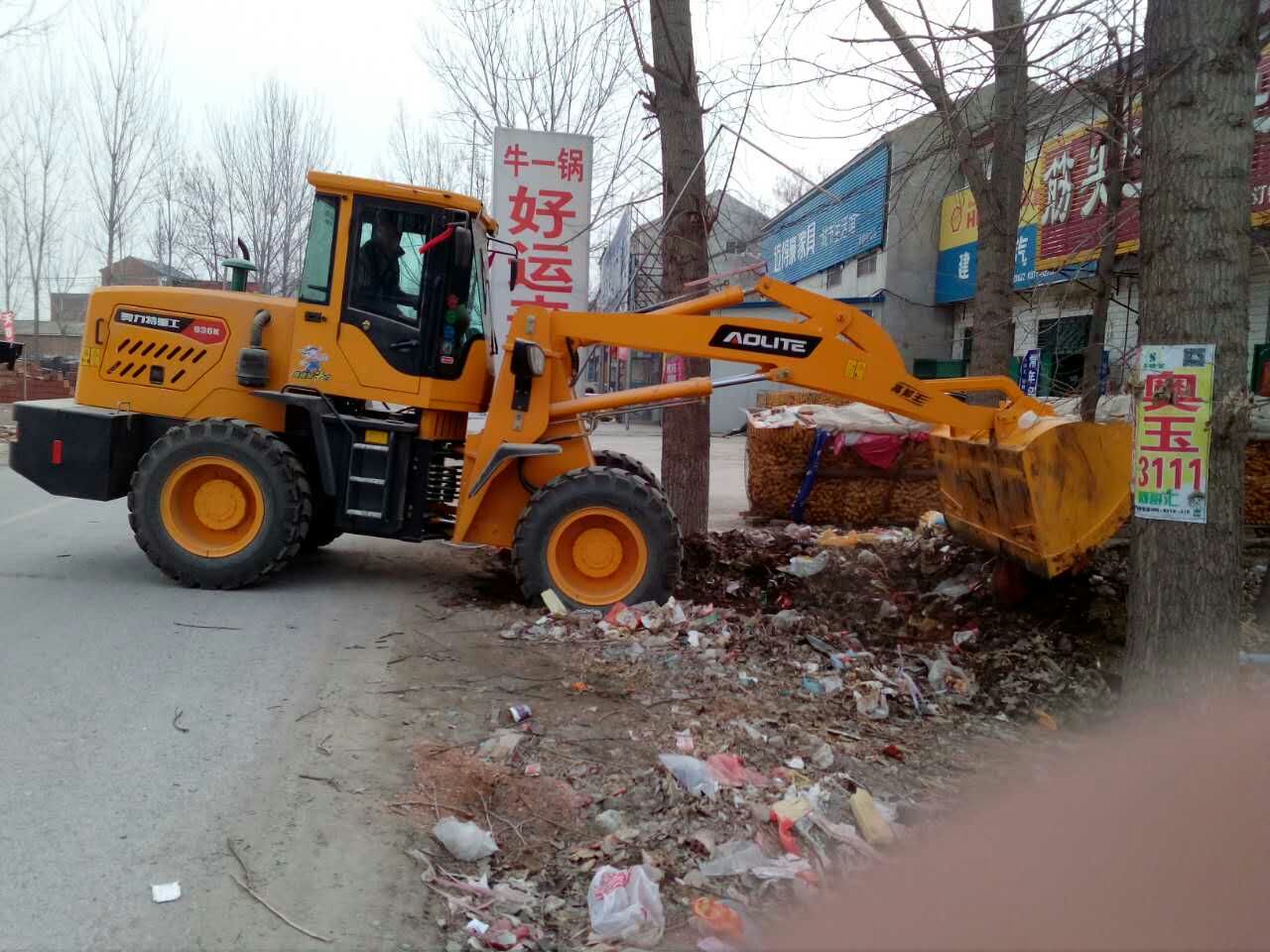 活动中大家手拿扫帚、铁锨,同时动用铲车等大型机械,严格按照“三无、一规范、一眼净”的标准,对路边、沟边的成堆垃圾和零散的塑料袋进行了集中清理,另外,镇政府还出动消防车,对镇区主要道路进行了洒水。