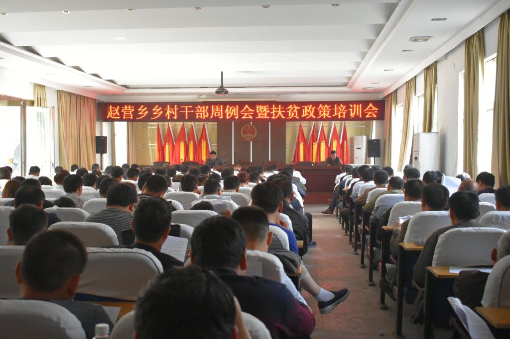 4月24日下午,赵营乡召开乡村干部周例会暨扶贫政策培训会,乡全体机关干部、村两委全体、驻村第一书记、乡直有关部门负责人共170多人参加了会议。