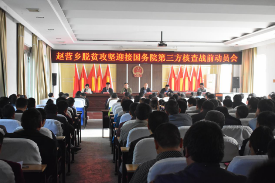 4月18日,赵营乡召开脱贫攻坚迎接国务院第三方核查战前动员会。乡全体机关干部、村两委全体、乡直部门负责人、驻村第一书记参加会议。