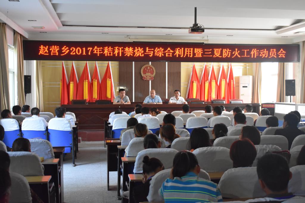 5月26日,根据县委县政府统一安排部署,赵营乡组织全体机关干部、乡直部门负责人及村两委全体,召开秸秆禁烧与综合利用暨三夏防火工作动员会。会议强调各村要加强宣传,在主要道路口和田间地头悬挂条幅,同时向群众分发宣传页,让群众认识到三夏防火和秸秆综合利用的重要性。乡政府将成立专门督导组,督促指导各村禁烧准备工作,确保三夏防火工作万无一失,零燃烧点。