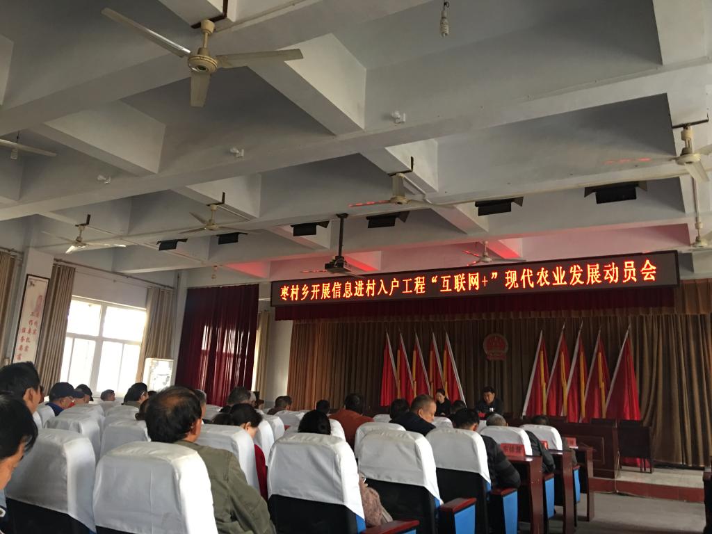 10月23日上午9点,栆村乡组织机关全体干部职工、各行政村村党支部书记开展信息进村入户工程“互联网+”现代农业发展动员会,详细传达县有关会议精神,认真贯彻落实会议部署和要求。