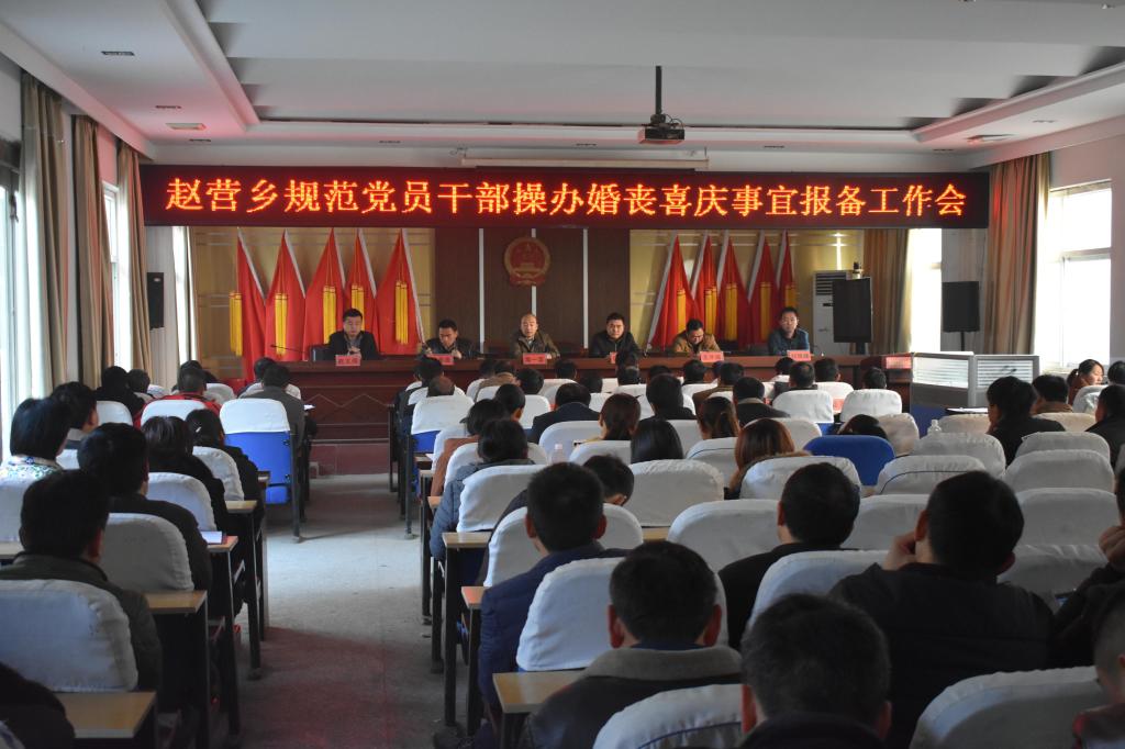 11月27日,赵营乡召开规范党员干部操办婚丧喜庆事宜报备工作会,乡机关全体干部、各村支书、村长参加本村会议。