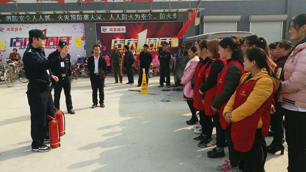 11月9日是我国 “11.9”消防日,为认真做好冬季防火工作,使消防安全工作更加深入人心,老爷庙乡派出所安排民警深入辖区鸿发超市,组织全体超市员工开展消防演练活动。
