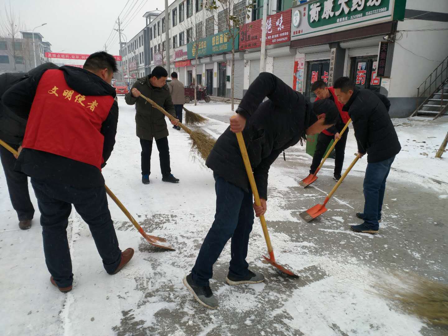 干部职工纷纷走上街头,顶着雪花、冒着严寒,手拿扫把、铁锹等工具,清理街道上的冰雪。干部职工争先恐后、干劲十足,在他们的带动下,沿街店主、不少群众也自发加入到扫雪队伍的行列中。此次扫雪活动,为村民群众的生活和出行创造了一个安全的、良好的环境,同时使干部职工在为民服务的实践中感受到了劳动带来的快乐。