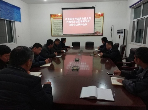 11月30日晚,老爷庙乡政府连夜组织班子成员和各区负责人召开会议,传达贯彻县大气污染防治攻坚冲刺30天决战会议精神,并在次日上午组织全体机关干部召开工作推进会。