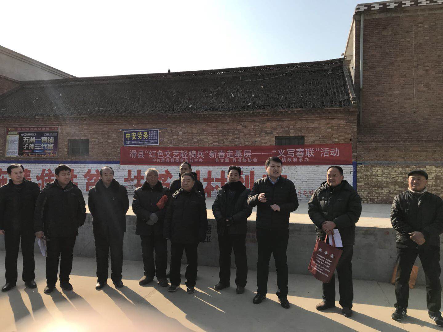2月6日,滑县“红色文艺轻骑兵”新春走基层“义写春联”活动来到牛屯镇,书法家现场为困难群众免费书写春联。