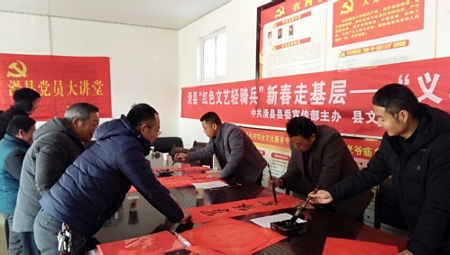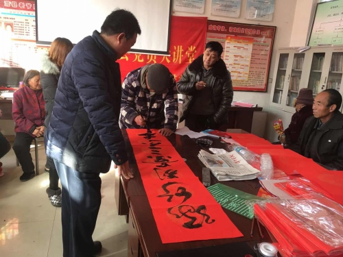 2月5日,滑县“红色文艺轻骑兵”新春走基层--义写春联活动走进老爷庙乡,书法家现场书写春联免费赠与困难群众。