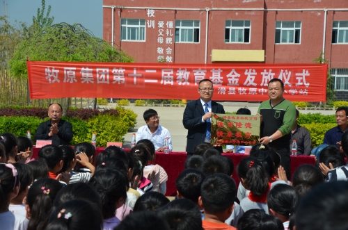 4月19日,老爷庙乡在东中冉小学举行牧原集团第十二届教育基金发放仪式,对东中冉小学教师、管理者及村级管理者过去一年辛勤的付出表示感谢,对取得的优异成绩予以鼓励。其中1名优秀管理者获得2000元基金资助,5名优秀教师获得1500元基金资助,8名优秀教师获得了1000元基金资助,12名优秀教师获得了500元基金资助,村级管理员、小学管理班子同25名优秀教师共获得近3万元基金资助。