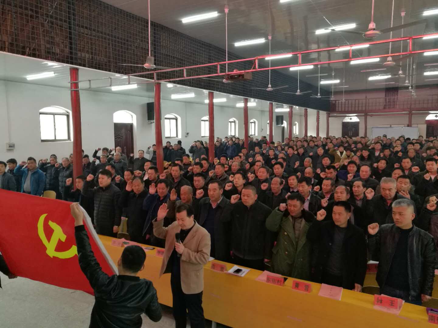 面对鲜红的党旗,全体党员干部举起右手,神情庄严坚定,热情庄重地宣誓着每一句承诺:“我志愿加入中国共产党,拥护党的纲领,遵守党的章程,履行党员义务,执行党的决定,严守党的纪律,保守党的秘密,对党忠诚,积极工作,为共产主义奋斗终身,随时准备为党和人民牺牲一切,永不叛党”。入党誓词的十二句话,字字千钧,既包括了党对党员的基本要求,也概括了党员对党组织和党的事业所应承担的责任。