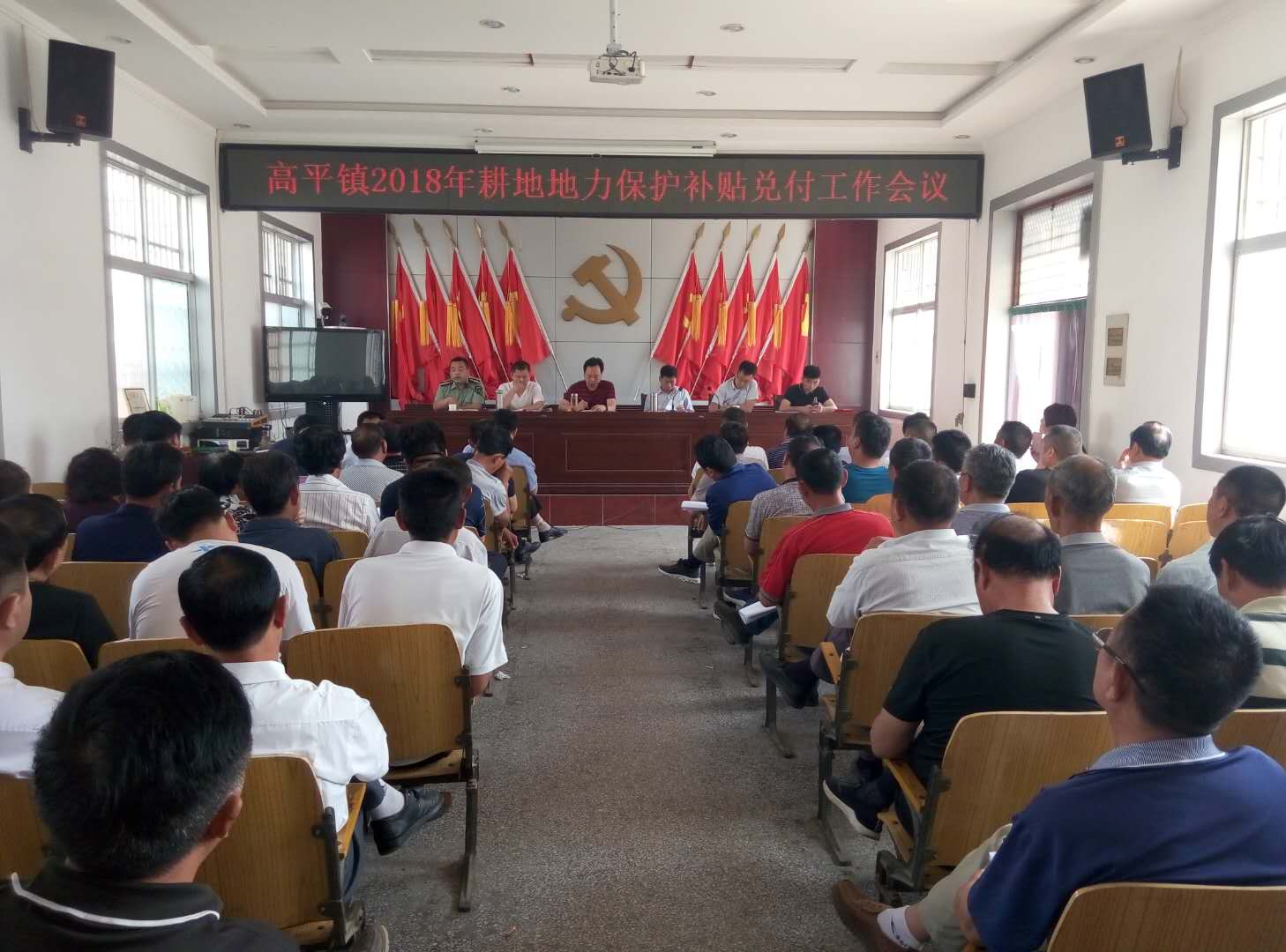 5月31日,高平镇召开2018年耕地地力保护补贴兑付工作会议,镇机关全体干部、村两委负责人参加了此次会议。
