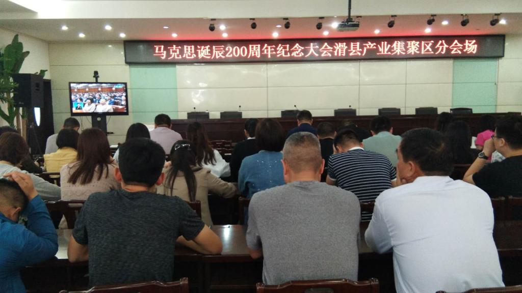 5月4日上午,县产业集聚区组织机关全体、各行政村党员干部集中收看纪念马克思诞辰200周年电视直播会。