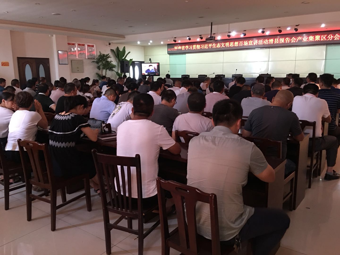 7月18日下午,产业集聚区全体机关干部和村两委成员,在六楼会议室收看了河南省学习贯彻习近平生态文明思想百场宣讲活动滑县报告会。