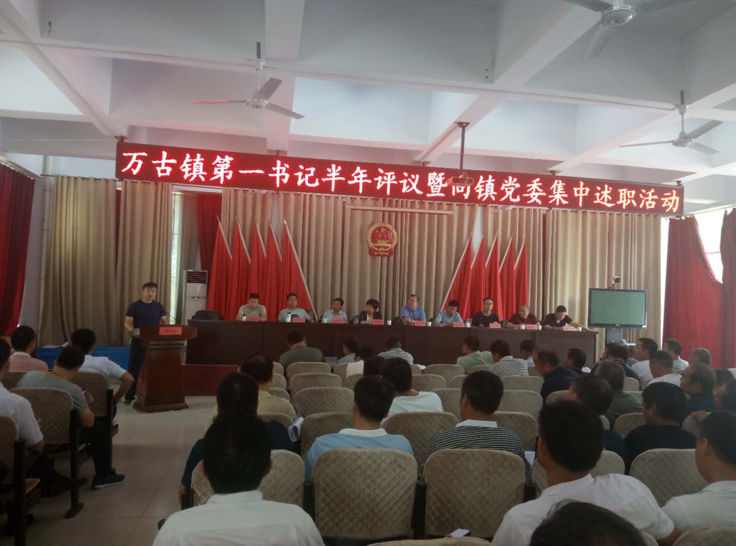 日前,万古镇组织机关全体党员干部、各行政村“村两委”全体干部、各行政村驻村第一书记,在政府大会议室开展了第一书记半年评议暨向镇党委集中述职活动。