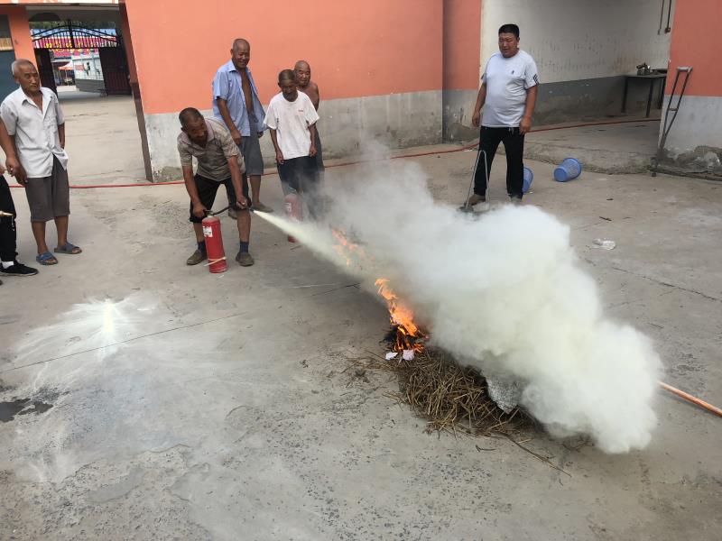 民政所工作人员详细讲解了火灾预防、火场自救、逃生防范知识以及灭火器使用方法,并告知老人们在夏天如何正确使用蚊香、电风扇。随后,敬老院所有工作人员和院民在工作人员的指导下进行了消防应急疏散演练和灭火器现场操作练习。并根据敬老院突发事件应急预案,现场组织火灾扑救、逃生等演练。通过此次演练及消防安全宣传,有效提高敬老院老人和工作人员消防安全意识和自防自救能力。