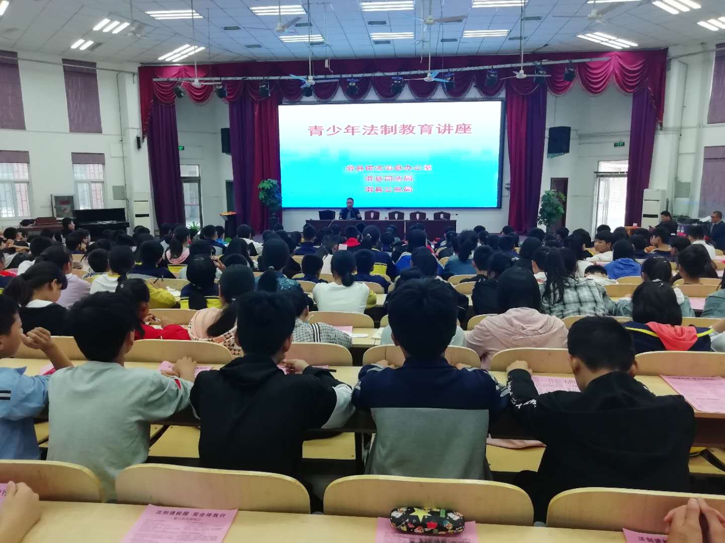 报告会上,县司法局和司法所工作人员为大家上了一堂生动的法制宣讲课。紧扣学生关心的热点和焦点问题,以案释法,深入浅出地为孩子们讲述了什么是违法与犯罪,用生动的案例、深刻的教训,警示学生要遵纪守法,鼓励青少年学生树立良好品行,树立正确的人生价、世界观和价值观,树立远大理想,陶冶高尚情操,健康成长。