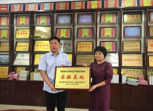 近日,道口镇街道第三初级中学顺利通过了河南省知识产权局、河南省教育厅的审批,正式成为“河南省中小学知识产权普及教育实验基地”。9月17日下午,滑县科技局领导来到该校举行了授牌仪式,并参观了科技活动室。近年来,道口镇街道第三初中在知识产权教育方面充分发挥引领带动作用,开展了一系列知识产权巡讲、征集学生小发明小制作等活动,有效地培养了学生的知识产权意识和创新意识。该校每年都要组织师生参与各级科技创新大赛,校科技社团的学生自己创作的作品屡次在全国、省、市级大赛中获奖,受到了社会各界的广泛关注和赞扬。