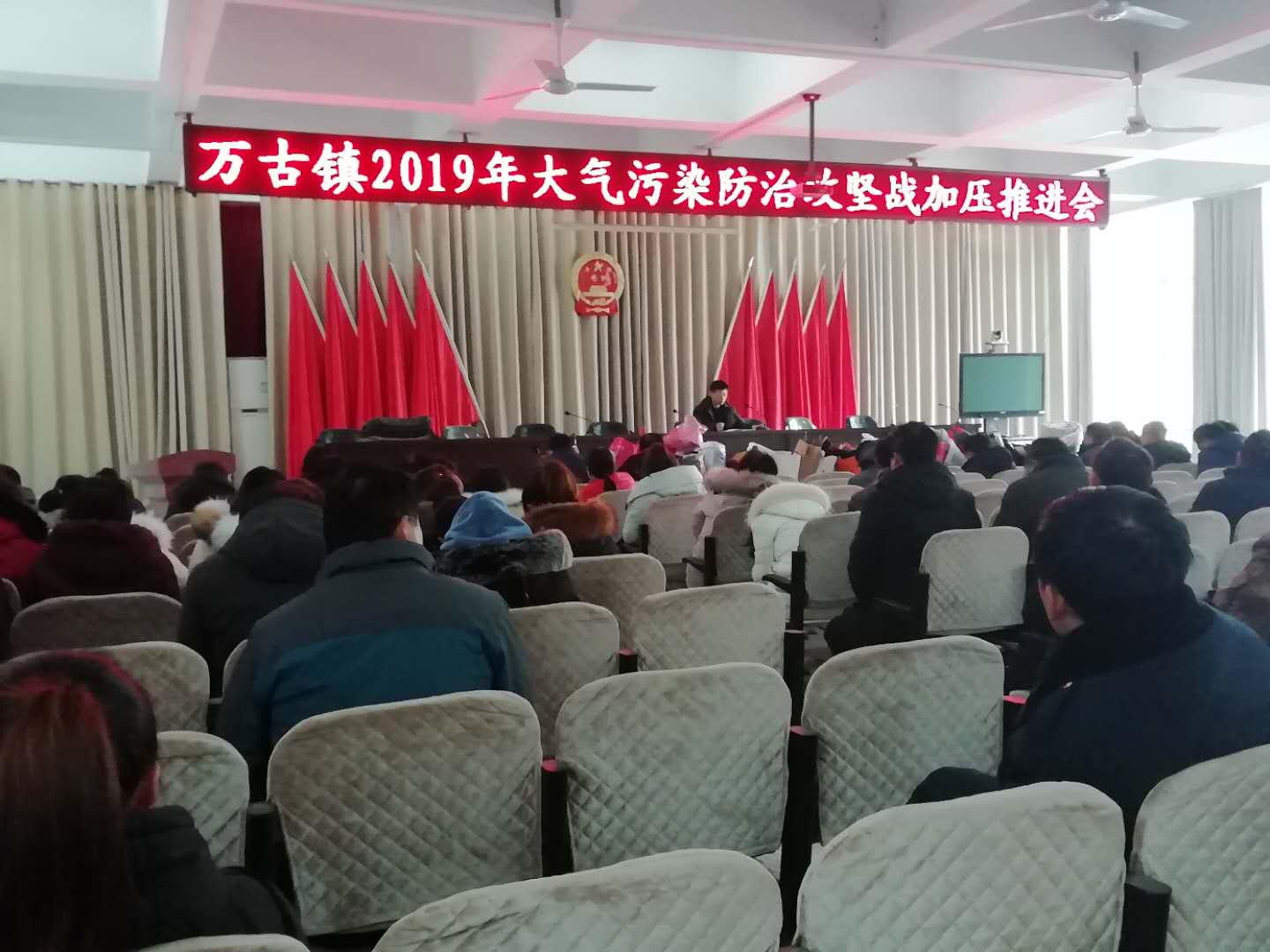 日前,万古镇组织全体机关干部和全体驻村第一书记,在政府大会议室召开大气污染防治攻坚推进会,传达学习全县大气污染防治攻坚加压推进会会议精神。