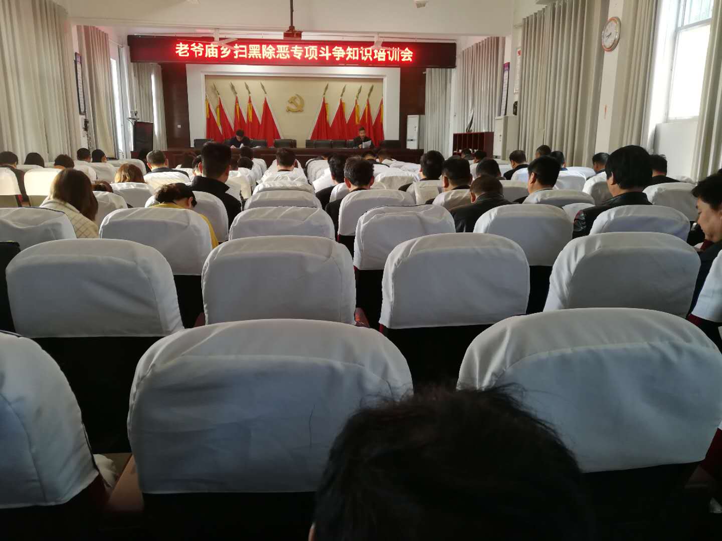 4月12日上午,老爷庙乡召开扫黑除恶专项斗争知识培训会,全体机关干部参加了会议。