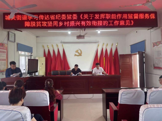 城关街道学习传达省纪委监委《关于发挥职能作用监督服务保障脱贫攻坚同乡村振兴有效衔接的工作意见》文件精神