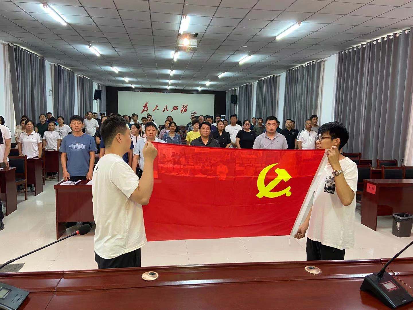 活动中全体党员面对鲜红党旗,举起右手庄严宣誓,重温入党誓词。大家从一段段历史中寻红色印记、忆峥嵘岁月,了解革命前辈艰苦卓绝的奋斗历程,缅怀革命先烈的丰功伟绩。