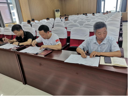 测试现场,领导班子成员带头参加测试,以身作则,率先垂范。全体党员干部认真思考,严肃作答,均在规定时间内完成了答题内容。