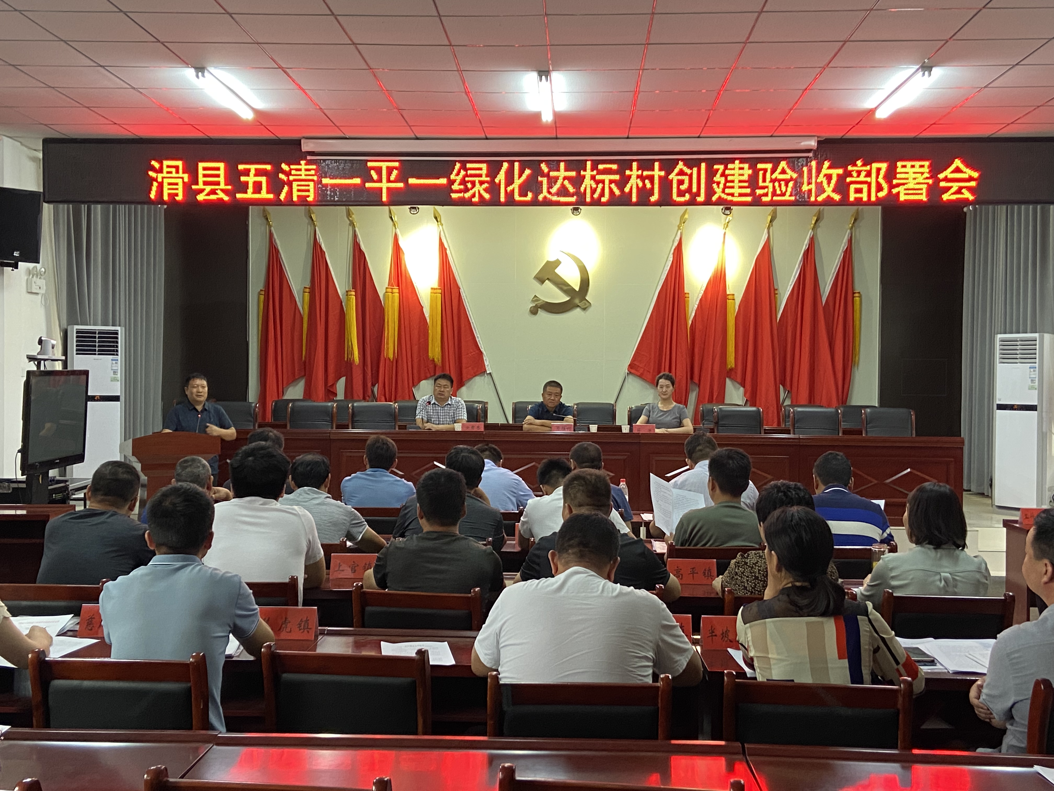 6月25日上午,全县五清一平一绿化达标村创建验收部署会在瓦岗寨乡政府大会议室召开。