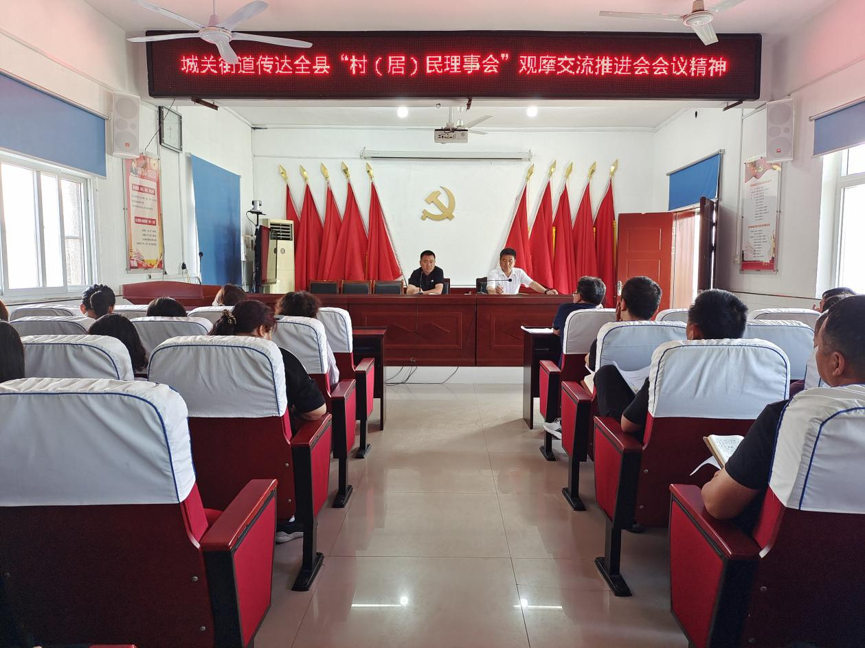 城关街道传达全县“村(居)民理事会”观摩交流推进会会议精神