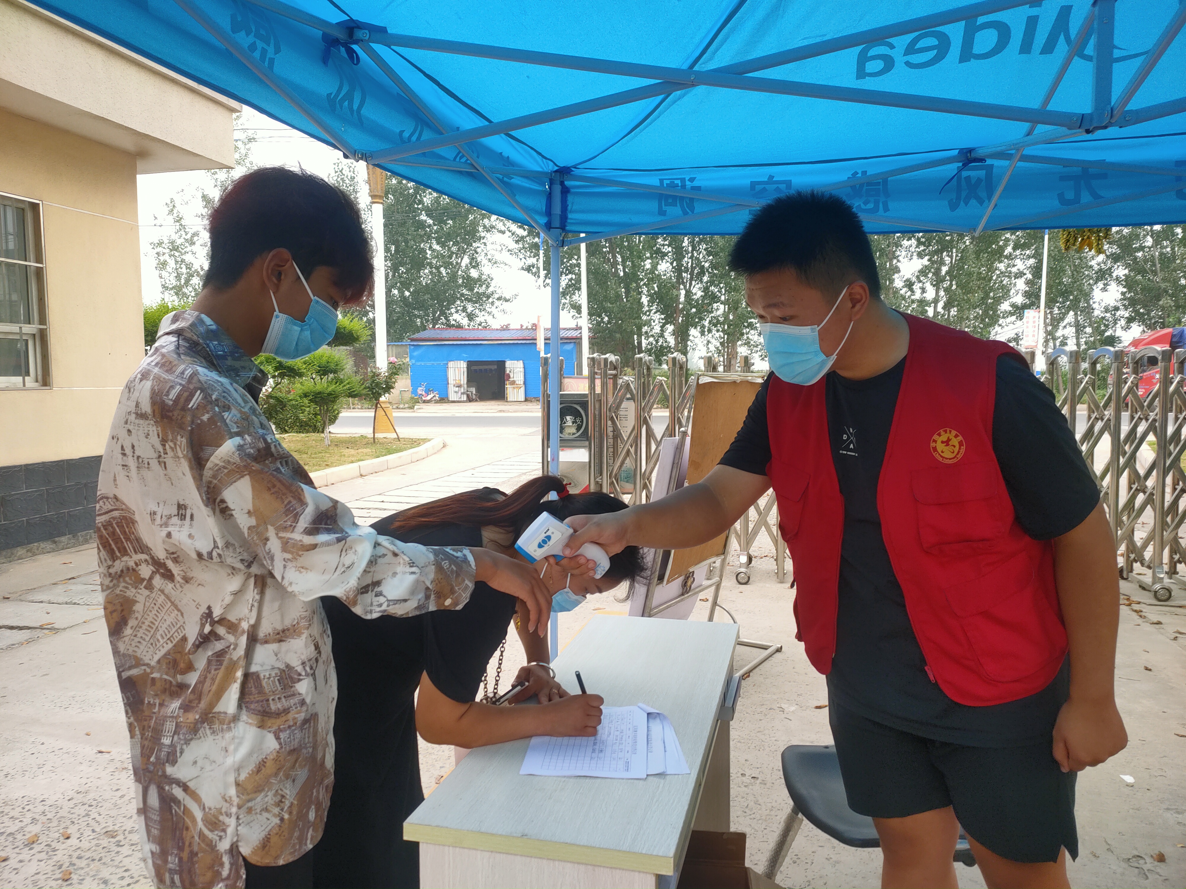 近日,在瓦岗寨乡各疫情防控卡点,出现了很多年轻的面孔。他们手拿测温枪,顶着烈日,在入村口、单位门口、社区门口等疫情防控卡点开展出入人员测量体温、扫码登记等工作,并提醒来往人员戴好口罩。他们就是冲在战“疫”一线的大学生志愿者,用实际行动为战“疫”贡献自己的青春力量。