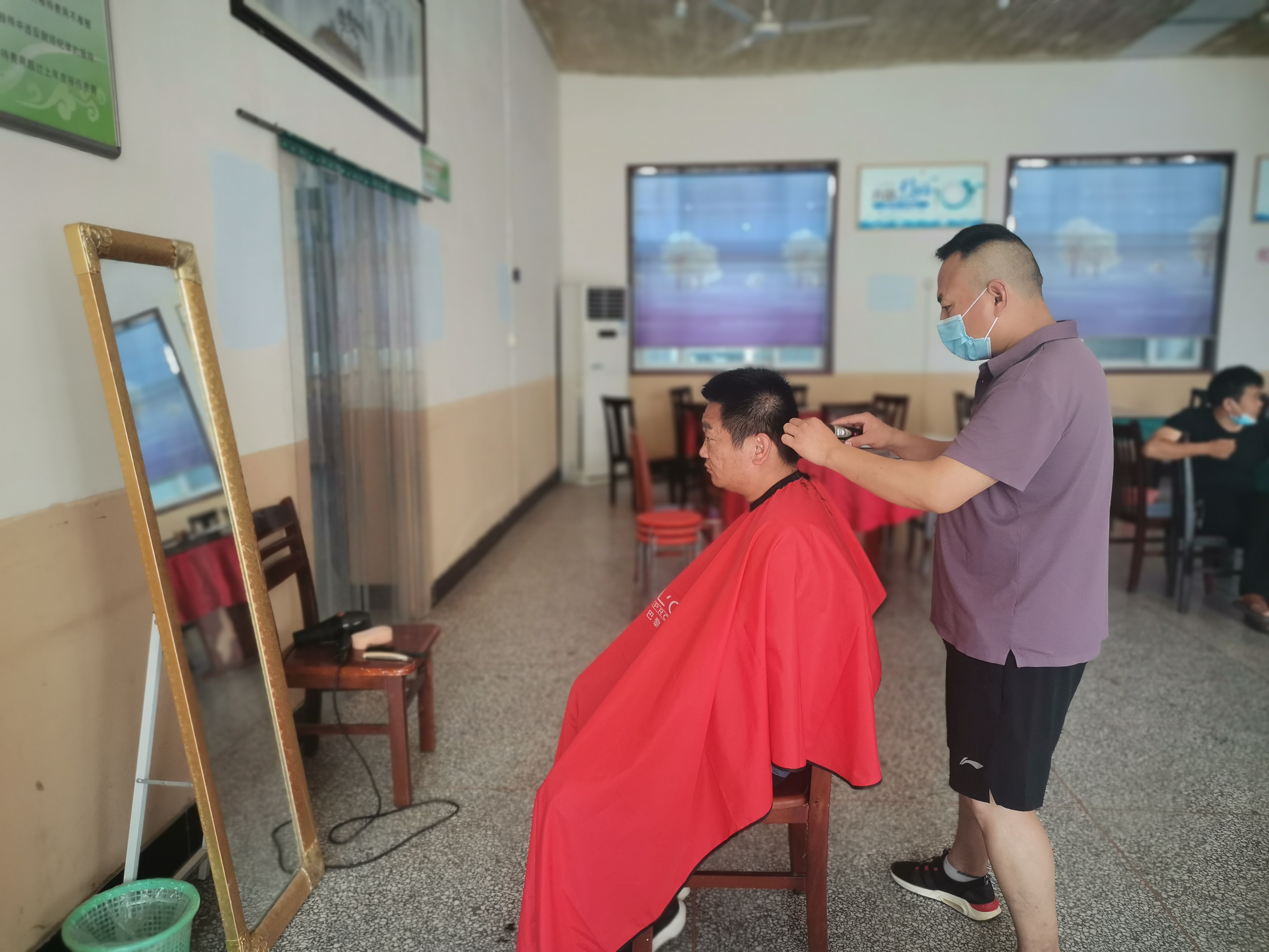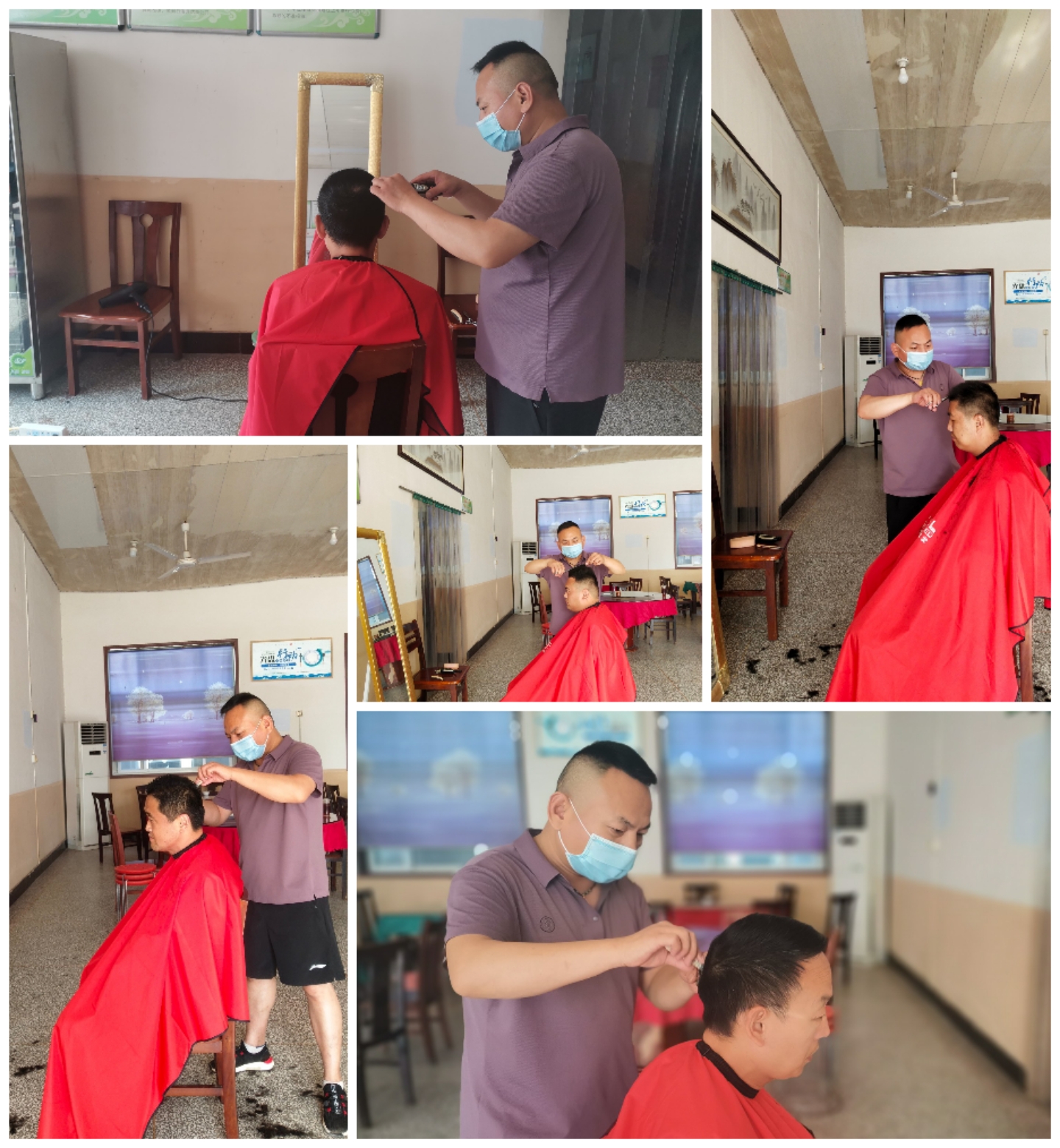 一面镜子,一把椅子,一块干净围布,一套简单工具,一个临时“理发店”便开张了。采师傅不停地挥动手中的剪刀,一位接着一位剪,一下午的时间甚至水都顾不上喝一口,想让他坐下来休息一会儿,他却说作为一名理发师,凭着这个手艺能为疫情防控出一份力,一点都不累!看着大家理完发神清气爽地走出去,特别的满足。仅仅半天时间,便为大家解决了“头”等大事。