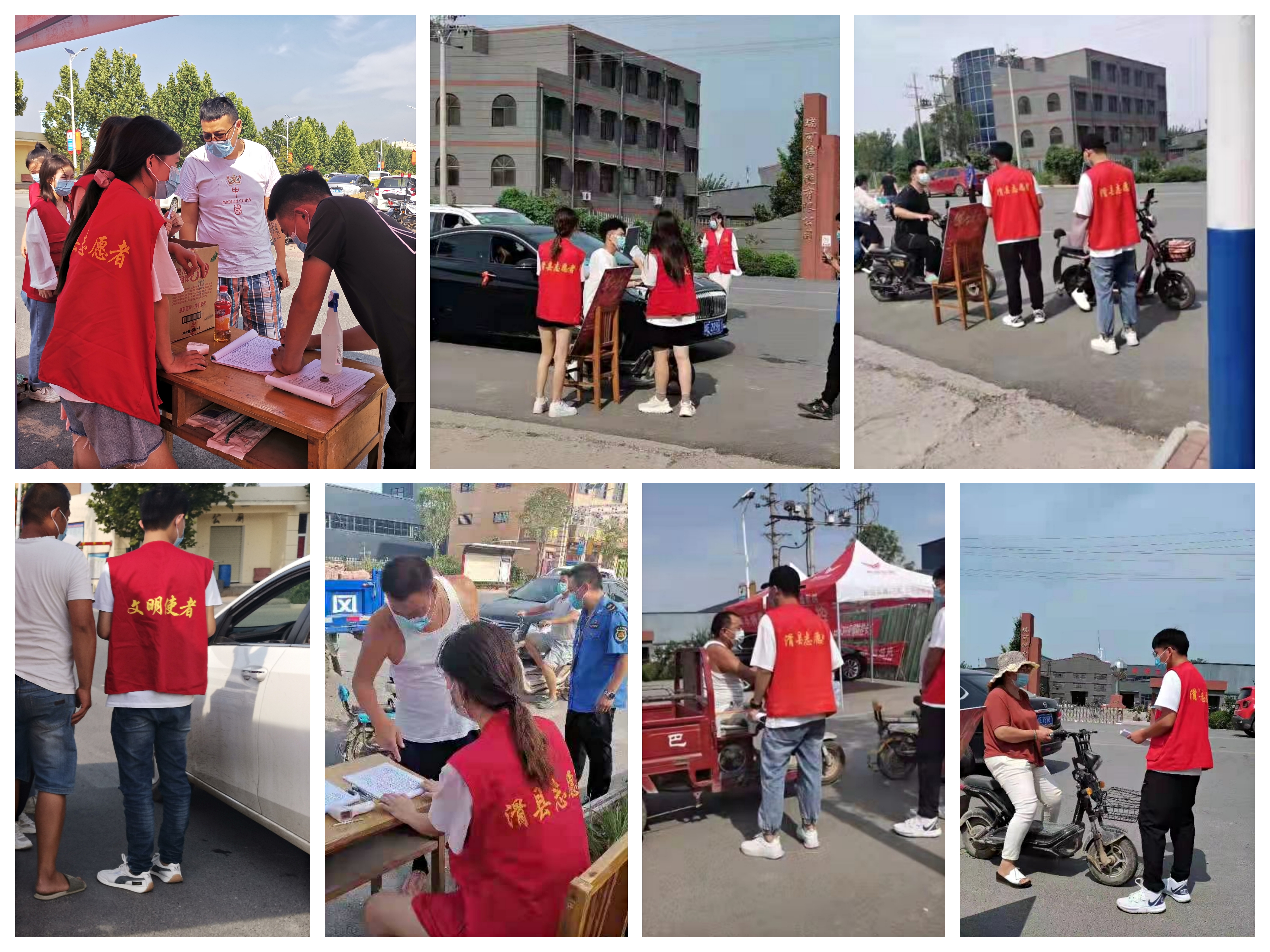 在各村疫情防控卡点,他们身着红马甲、手持测温枪,协助进行体温监测、信息登记、扫码、维持车辆通行秩序等各项志愿服务工作。