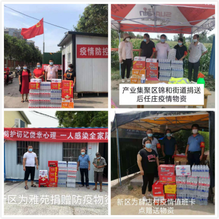 为坚决打赢疫情防控阻击战,慰问一线“守门员”,近日,产业集聚区、锦和街道积极开展“四送一助力”活动,慰问坚守在一线的工作人员,为辖区各村(社区)疫情防控卡点送上矿泉水、方便面、面包、火腿肠等食品和消毒液等疫情防控物资,嘱托工作人员要做好自身防护,同时为他们送去党工委、政府的感谢。