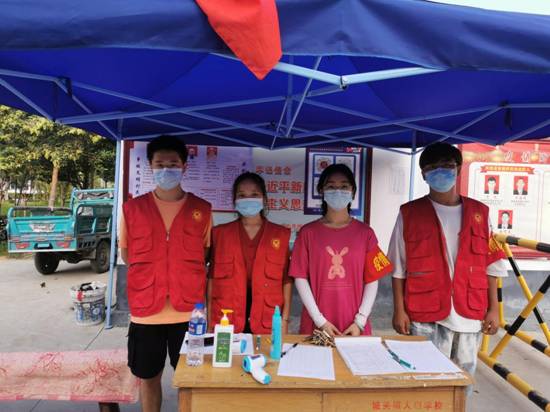 身着红马甲,手持测温枪,志愿者们在防疫卡点对出入人员、车辆逐一进行体温测量、健康码和行程码查验、做好进出人员信息登记、为居民提供酒精喷壶消杀等志愿服务工作。向居民发放防疫宣传资料,利用“小喇叭”反复播放防疫政策和防疫常识,并细心提醒过往居民正确佩戴口罩,做好个人防护措施。
