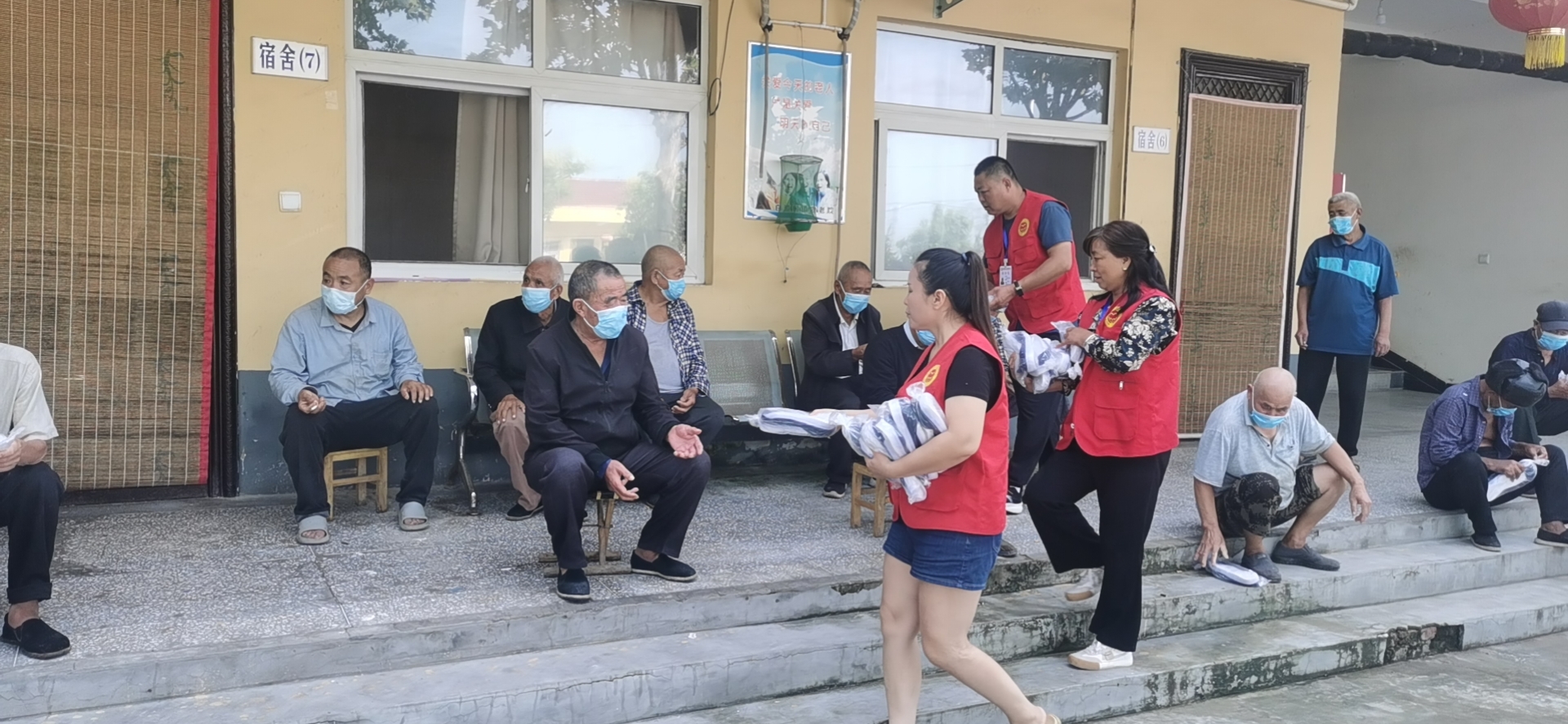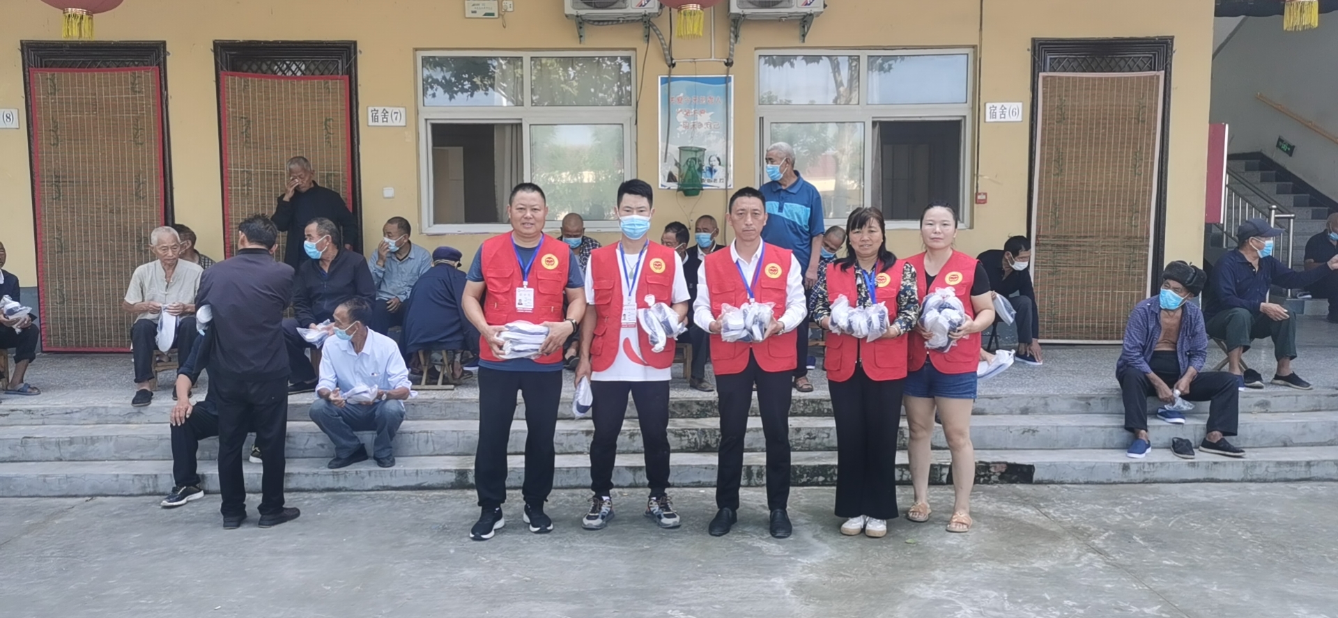 志愿者们到敬老院将一双一双鞋子按尺码送到他们手中。