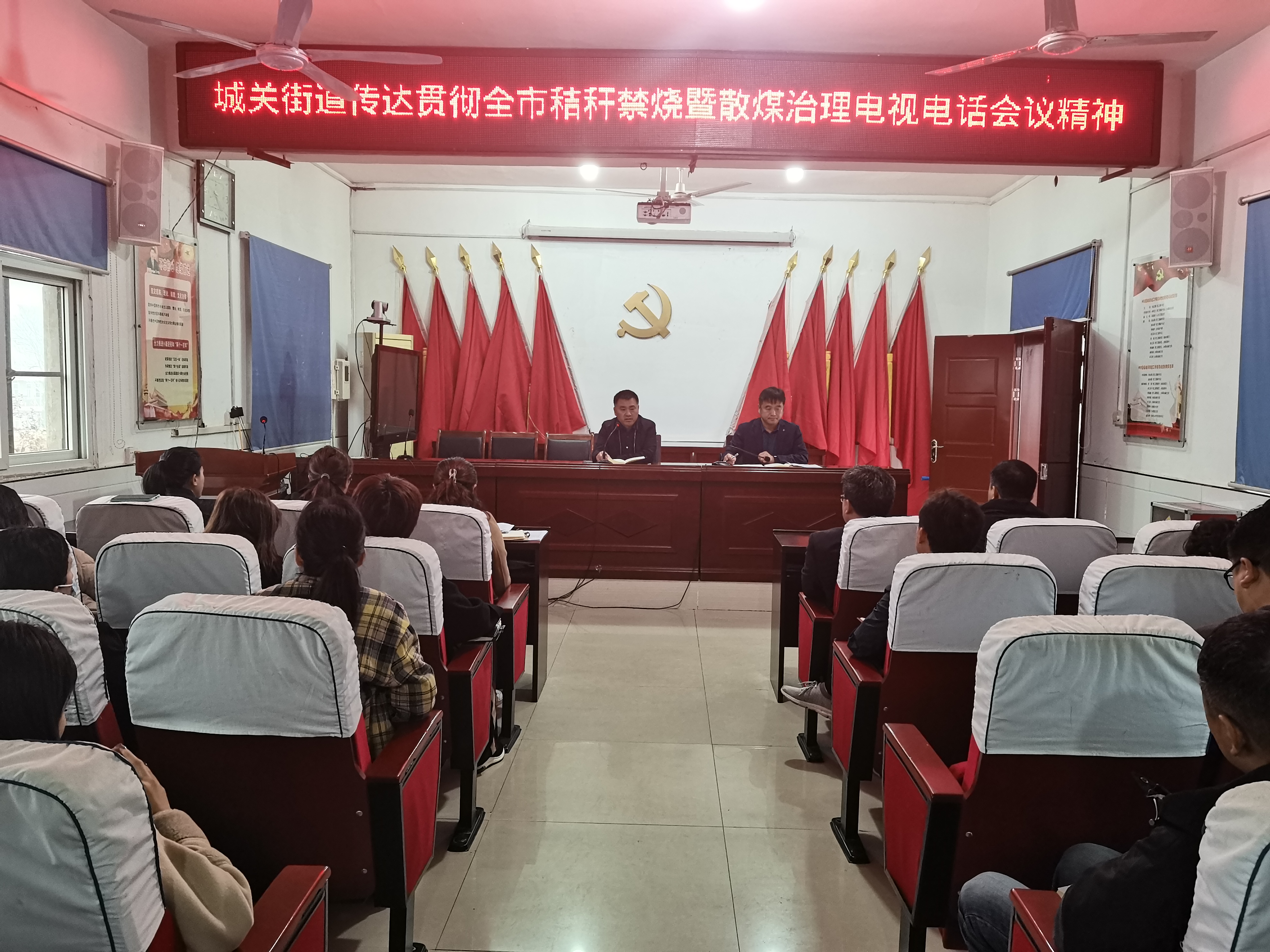 城关街道传达市秸秆禁烧暨散煤治理电视电话工作会议精神