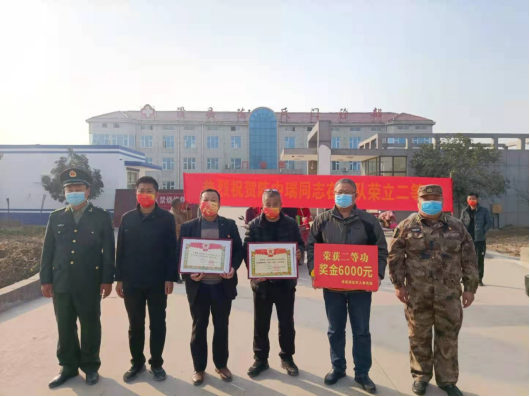 11月16日上午,桑村乡陈大召村锣鼓喧天、热闹非凡,桑村乡党委副书记常鹏飞带队,党委委员、武装部长师越、县武装部和退役军人事务局有关领导以及该村“村两委”全体干部一行7人,来到荣立二等功的现役军人陈中瑞家中,为其家属送去立功喜报、慰问金和慰问品,表达党委、政府对军人家属的亲切关怀。