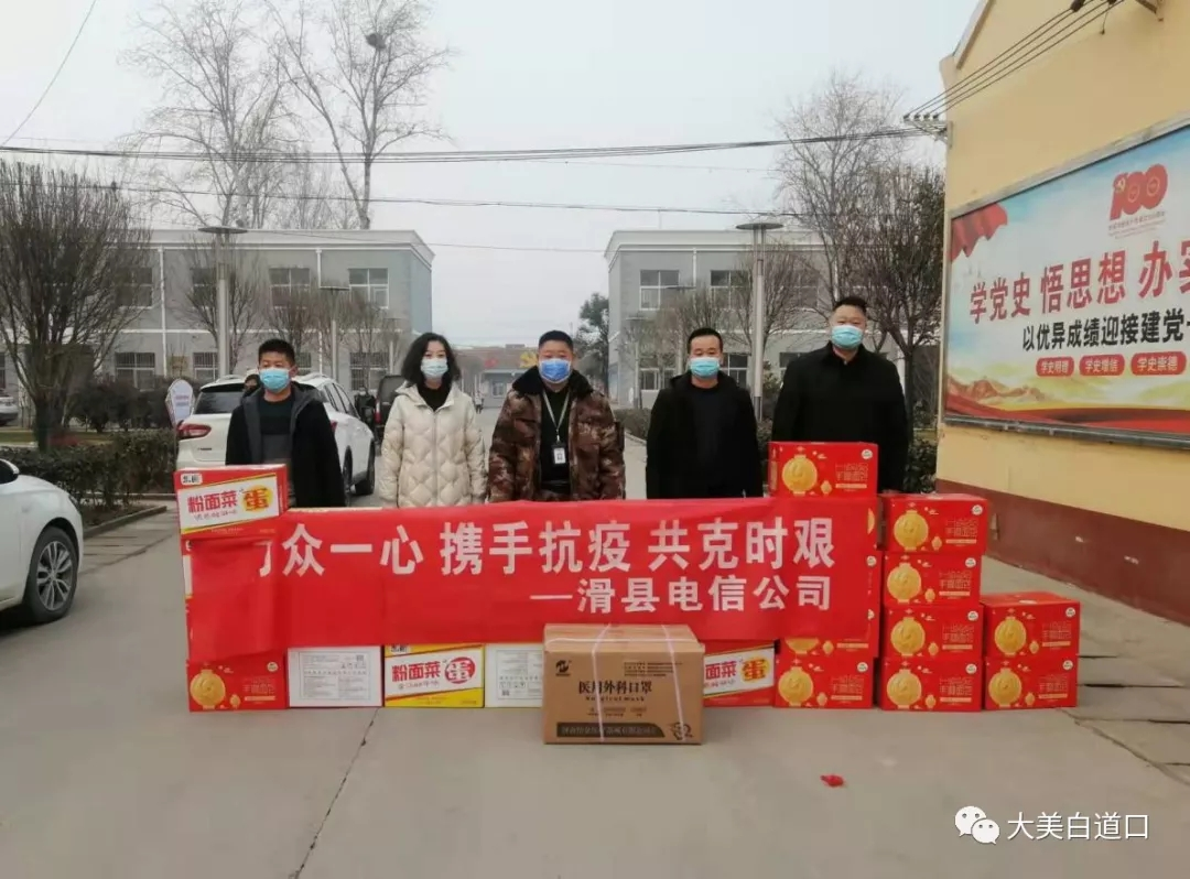 滑县电信公司捐赠口罩2500个,方便面15箱,面包15箱