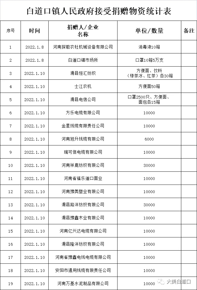 抗击疫情,情暖一线。面对当前复杂严峻的防疫形势,充足的防疫物资对于打赢疫情防控保卫战至关重要,在这种情况下,白道口镇爱心企业及爱心人士纷纷挺身而出,积极捐赠爱心物资,助力疫情防控工作,用爱心凝聚起抗击疫情的强大力量。