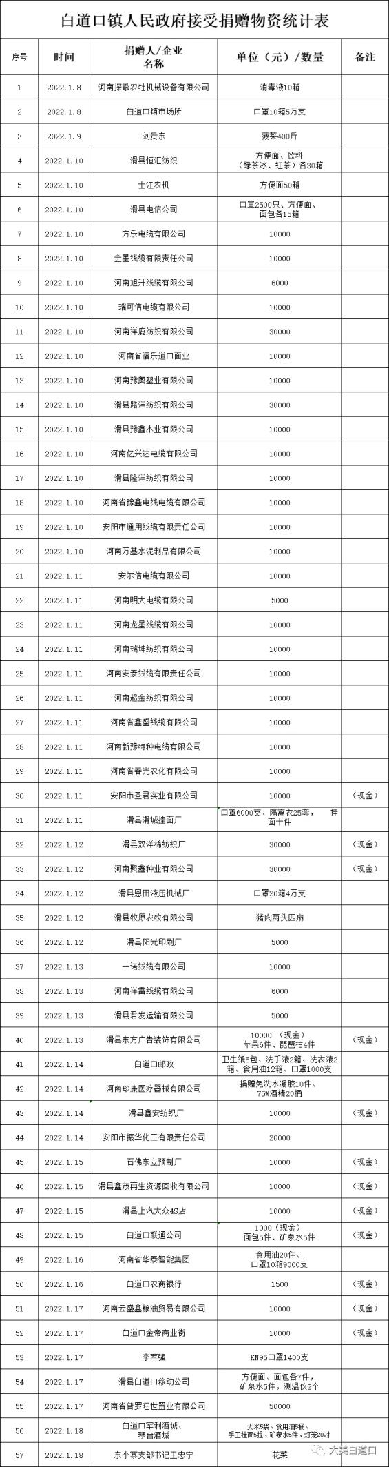 “抗击疫情、共克时艰”不是一句简单的口号。白道口镇广大爱心企业、爱心人士的积极捐赠,彰显了这背后的温情和厚度。这些捐赠不但坚定了白道口镇全体人民抗“疫”必胜的信念,也彰显了社会各界众志成城、共抗疫情的信心和决心。