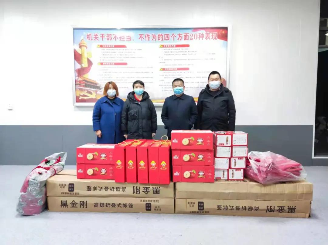 董酒滑县代理商捐赠5袋大米、5盒挂面、5桶食用油、5件矿泉水、20对灯笼