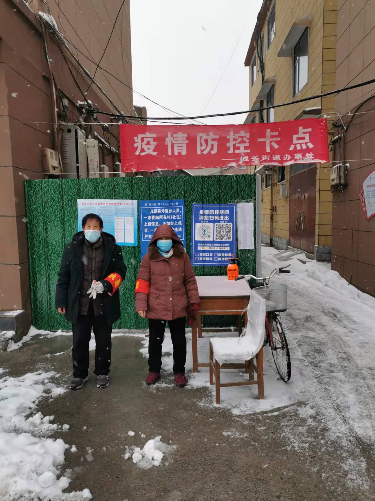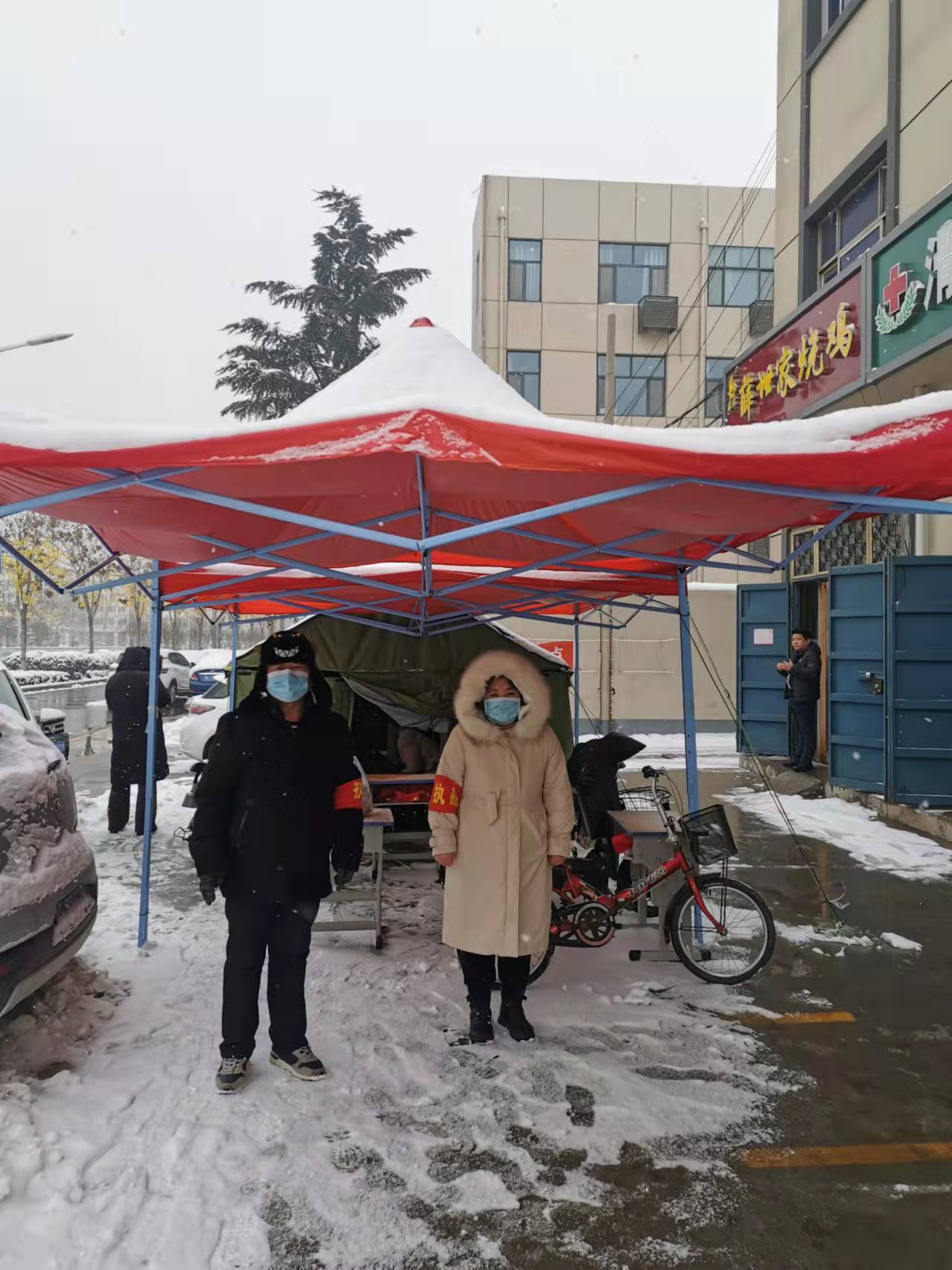 在疫情防控的重要时期,突如其来的风雪,给防疫工作增加了困难,但即便是在风雪中,城关街道工作人员依旧坚守在一线,全力守护辖区居民的平安健康,以实际行动践行“疫情就是命令,防控就是责任”。