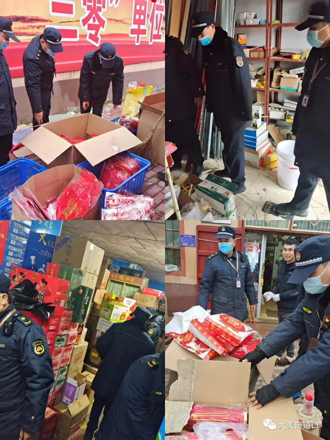 狠抓源头管控。强化巡查力度,联合派出所、城管队、市场监管所等对辖区内沿街商铺、集市等场所进行拉网式排查,发现非法出售烟花爆竹摊点,一律清理没收,对烟花爆竹销售、运输环节实现全链条、全区域监管,杜绝烟花爆竹在市场、摊点销售,及时消除辖区非法储存、销售烟花爆竹窝点。