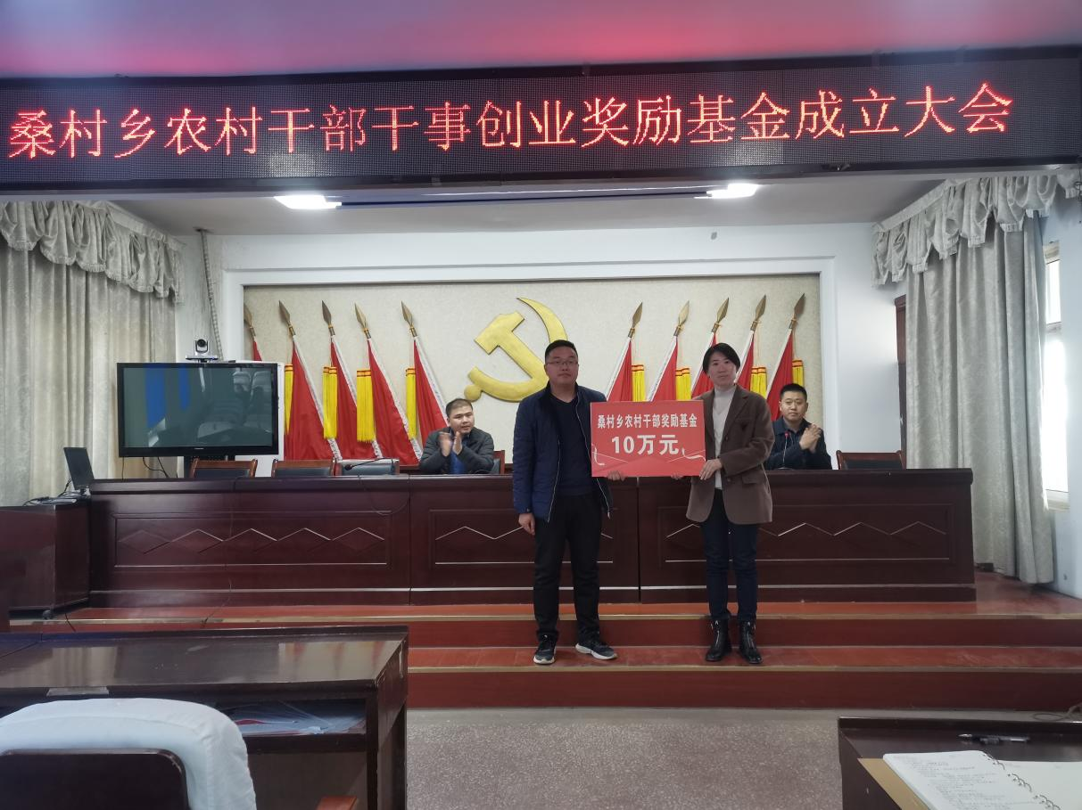 会上,乡党委副书记常鹏飞同志介绍了桑村乡农村干部干事创业奖励基金成立的意义,乡党委书记申亮亮同志宣布了该基金即日起正式成立,乡党委副书记、乡长吕迎利同志颁发了注入10万元资金的“桑村乡农村干部奖励基金”牌子,村支部书记代表肖志超同志作了表态发言。