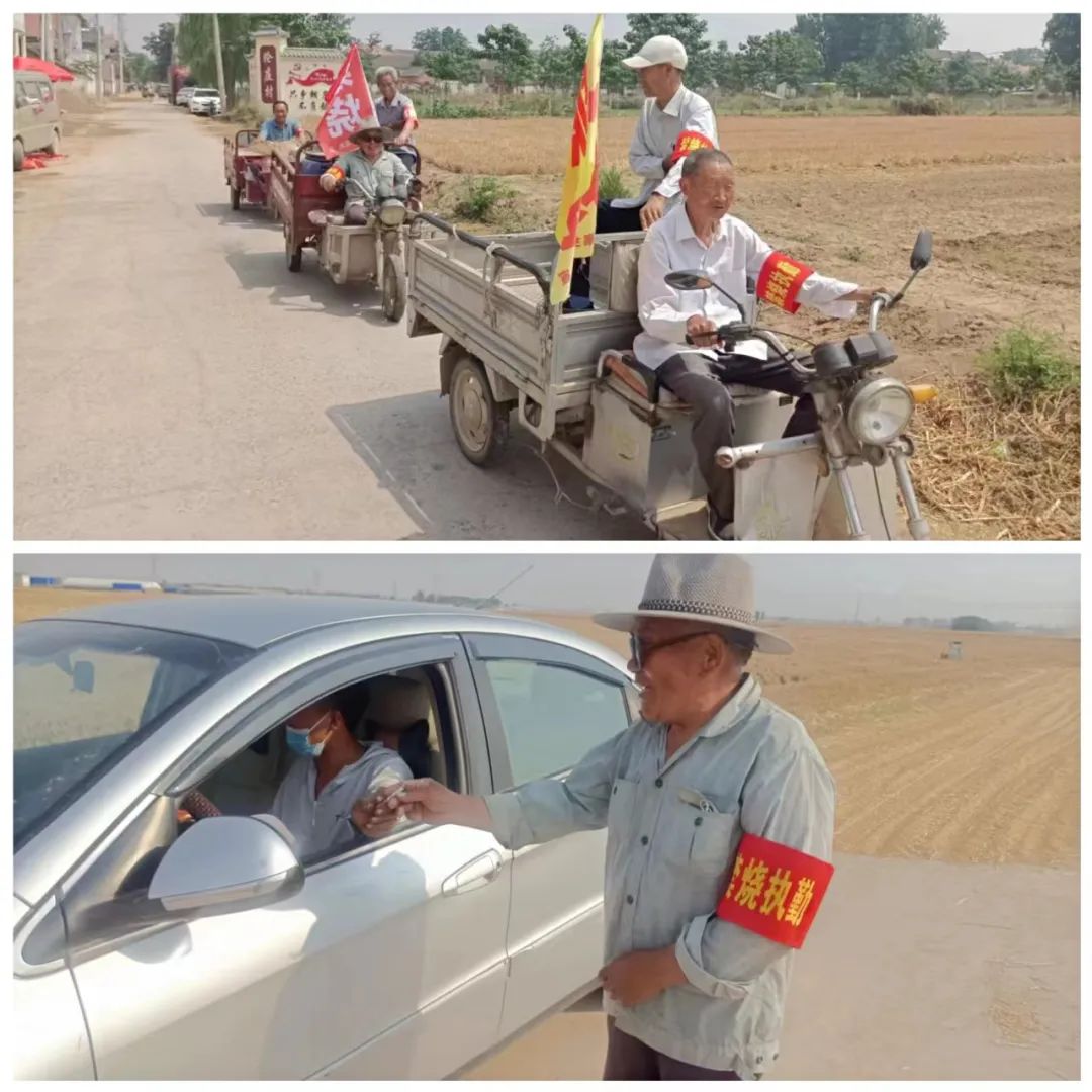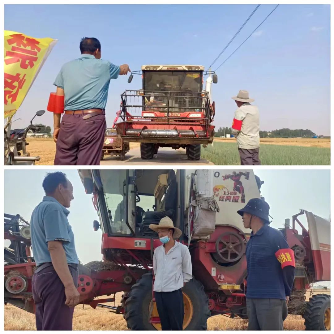 党员干部冲阵前,旗帜当数耄耋老。伦庄村七旬老党员郭贤成在卡点值班时发现郭某叼着香烟驾驶收割机准备入田,急忙摆手拦车却没有引起注意,随后追到田地向郭某要回香烟,并向其讲解宣传禁烧防火政策。瓦岗寨乡29个禁烧卡点,每个值守点就是一个“堡垒”,都有党员志愿者的影子,忙碌在田间地头的党员志愿者们成为禁烧一线最美的风景。瓦岗寨乡党委书记王瑞表示,“为实现今年三夏生产‘不点一把火,不冒一股烟’的禁烧目标,我们实行乡村大动员,干群齐参与,让党员作用强起来,党员形象树起来,党员身份亮起来,进一步增强基层党组织的号召力、凝聚力、战斗力,时刻绷紧秸秆禁烧这根弦,继续抓实抓牢秸秆禁烧工作,全力以赴打赢秸秆禁烧攻坚战,筑牢秸秆禁烧防火墙,确保夏粮颗粒归仓。”