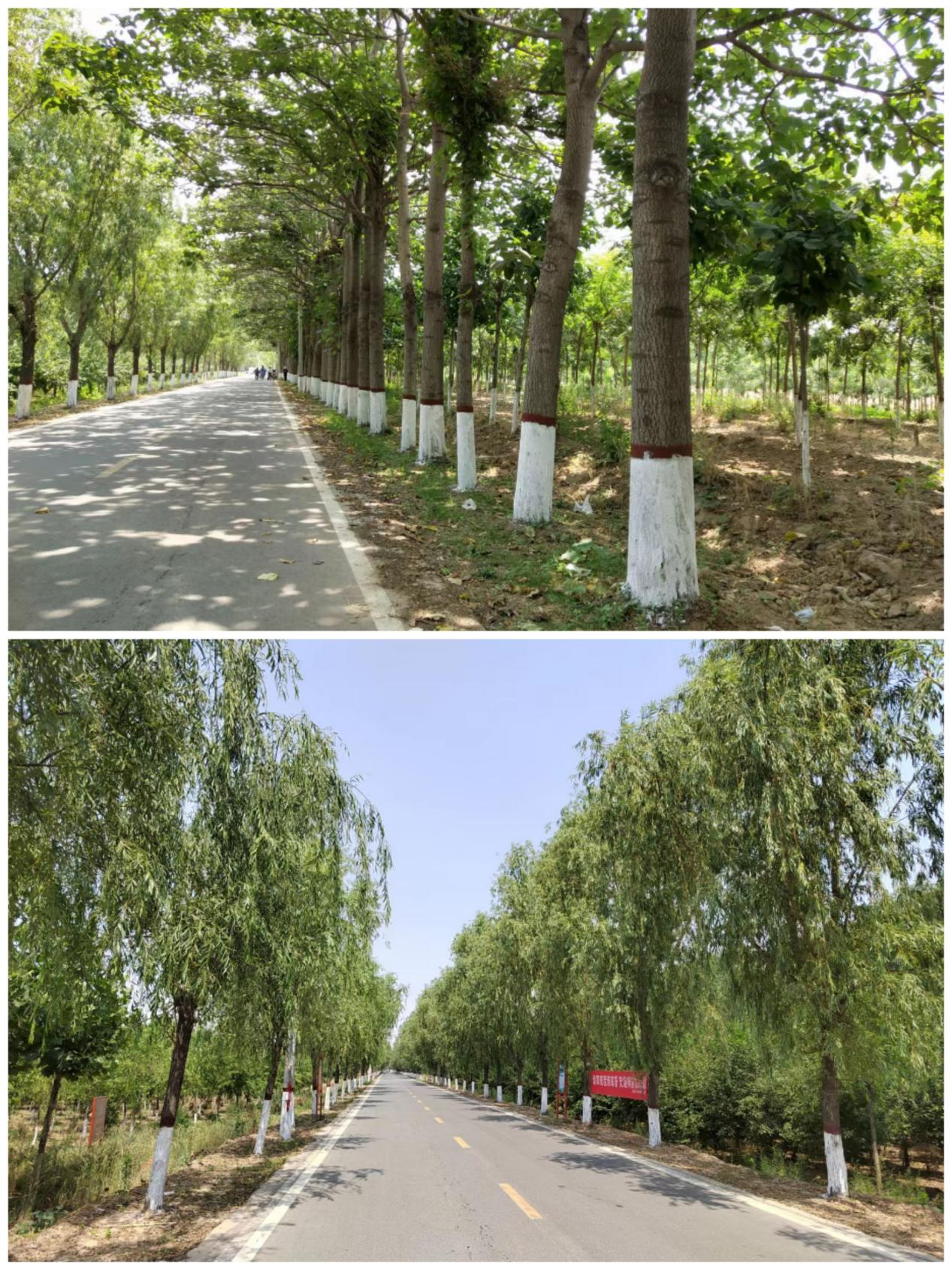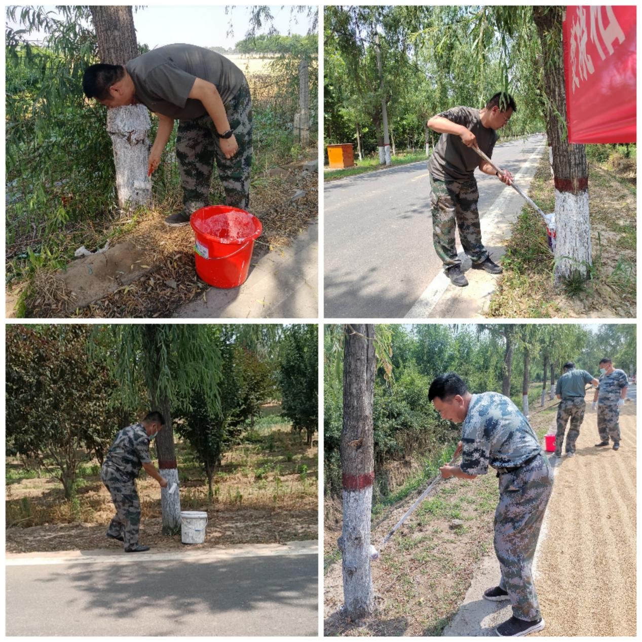 干部们坚持"高标准、严要求",认认真真、一丝不苟的刷好每一棵树,做到树干粉刷高度一致、粉刷均匀、整齐划一。