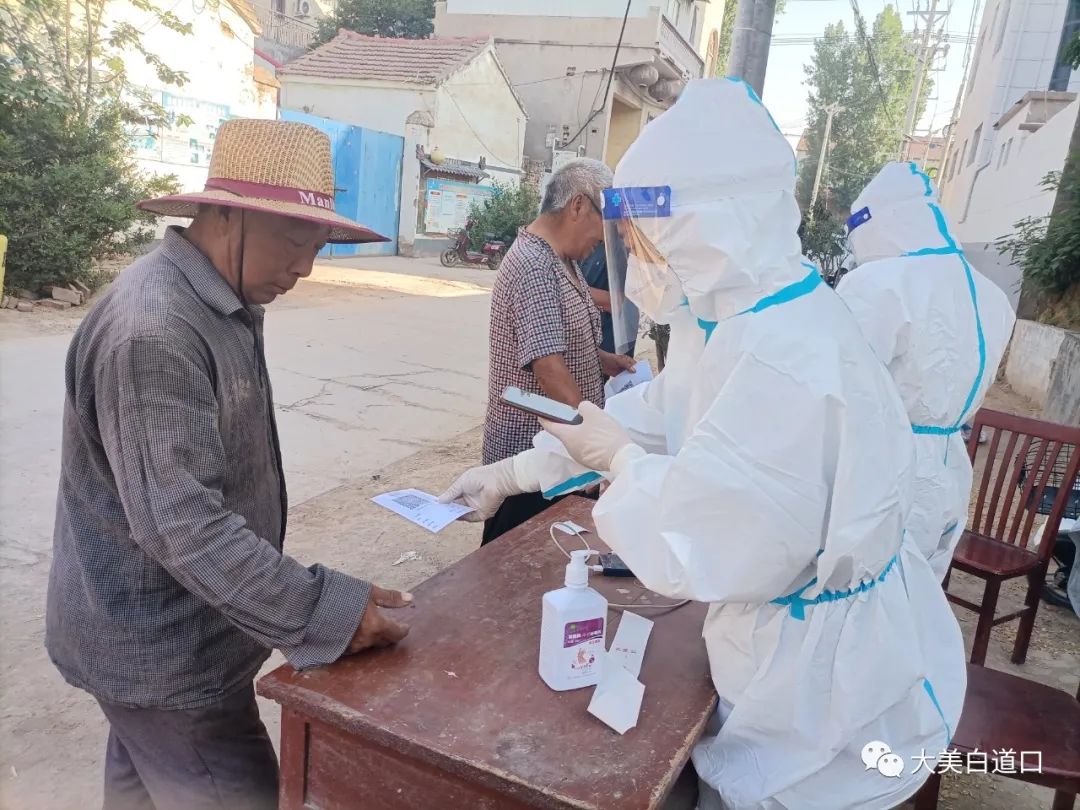白道口镇扎实做好疫情防控宣传工作,让大家在排队做好核酸检测的同时做好自身防护,戴口罩、不聚集、保持一米线。针对伤残人员、行动不便的老年人等特殊人员开展入户采样,做到核酸检测“应检尽检、不漏一人”。