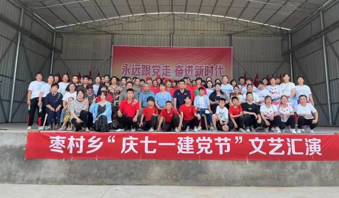 为庆祝中国共产党成立101周年,迎接党的二十大胜利召开,进一步提高党组织的凝聚力、战斗力和号召力,激发广大党员爱党爱国热情。6月30日上午,枣村乡开展”庆七一建党节”文艺汇演活动。