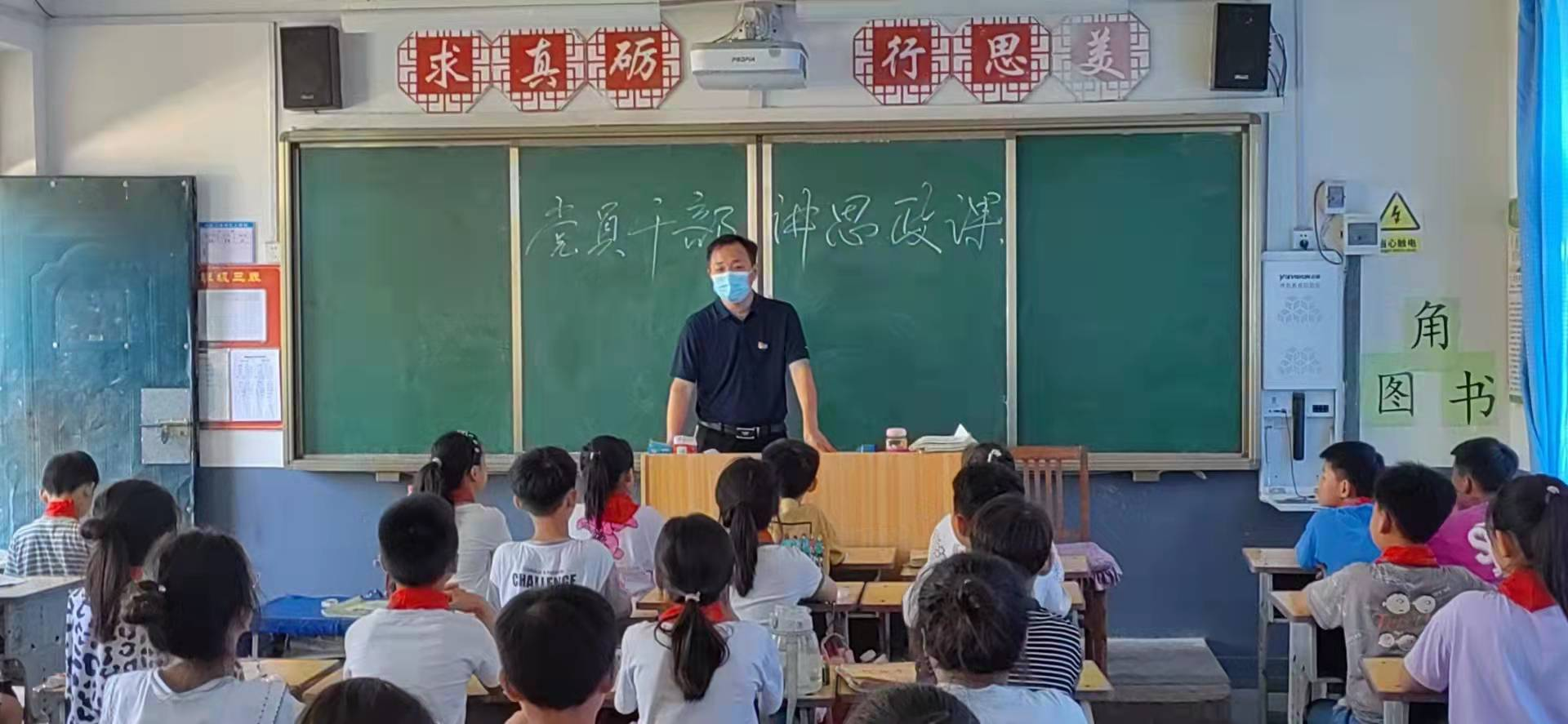 各位班子成员从政治、经济、文化等方面抽丝剥茧,旁征博引,通过贴近生活的主题、积极互动的形式,引导小学生们学党史、知党情、感党恩,树立远大理想,做德智体美劳全面发展的社会主义建设者和接班人。