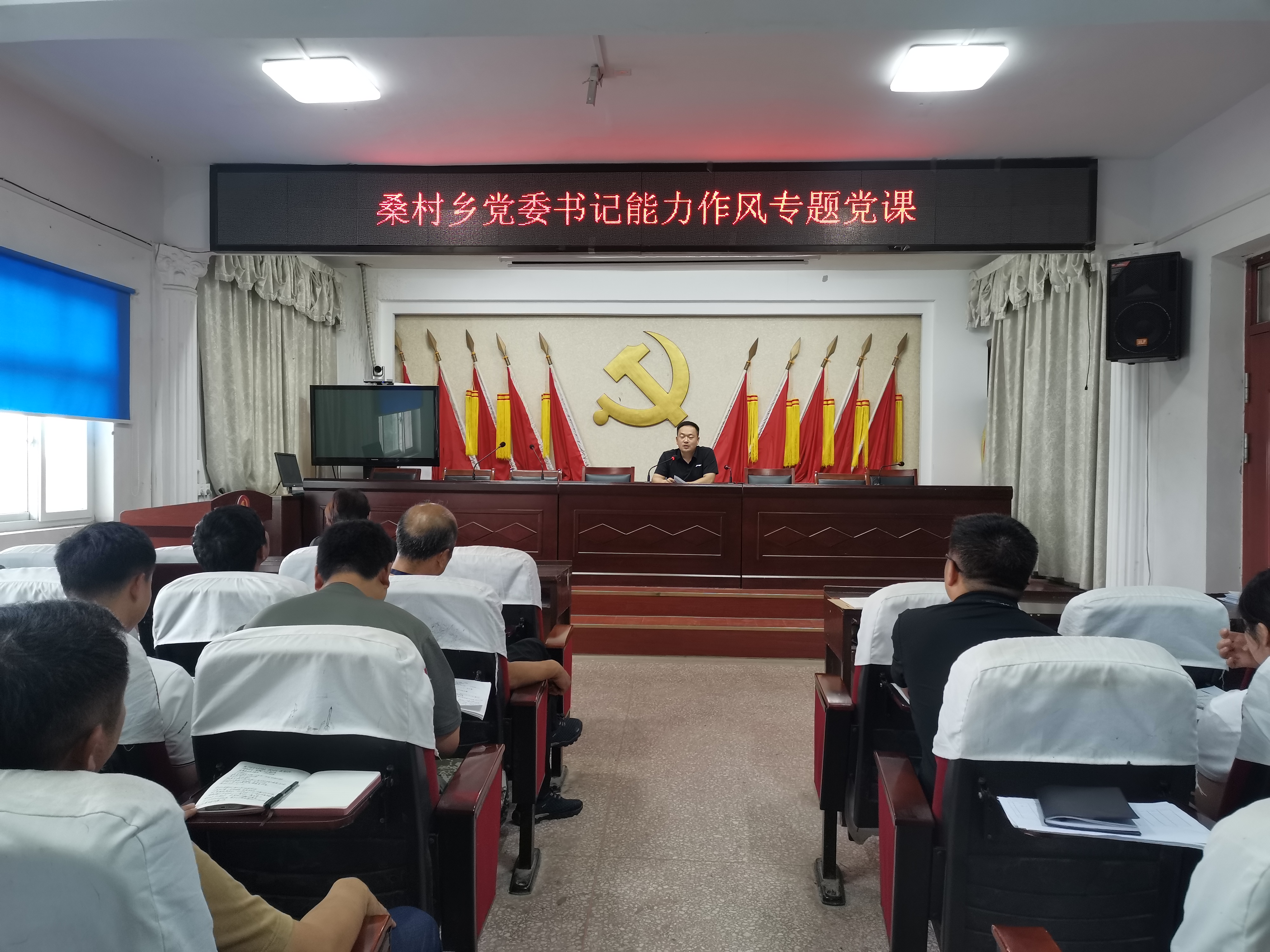 为扎实推动“能力作风建设年”活动落地见效,全面促进全乡党员干部解放思想、提升能力、转变作风,7月22日上午,桑村乡党委书记申亮亮为全乡机关干部、各村支部书记上了一堂生动的能力作风专题党课。