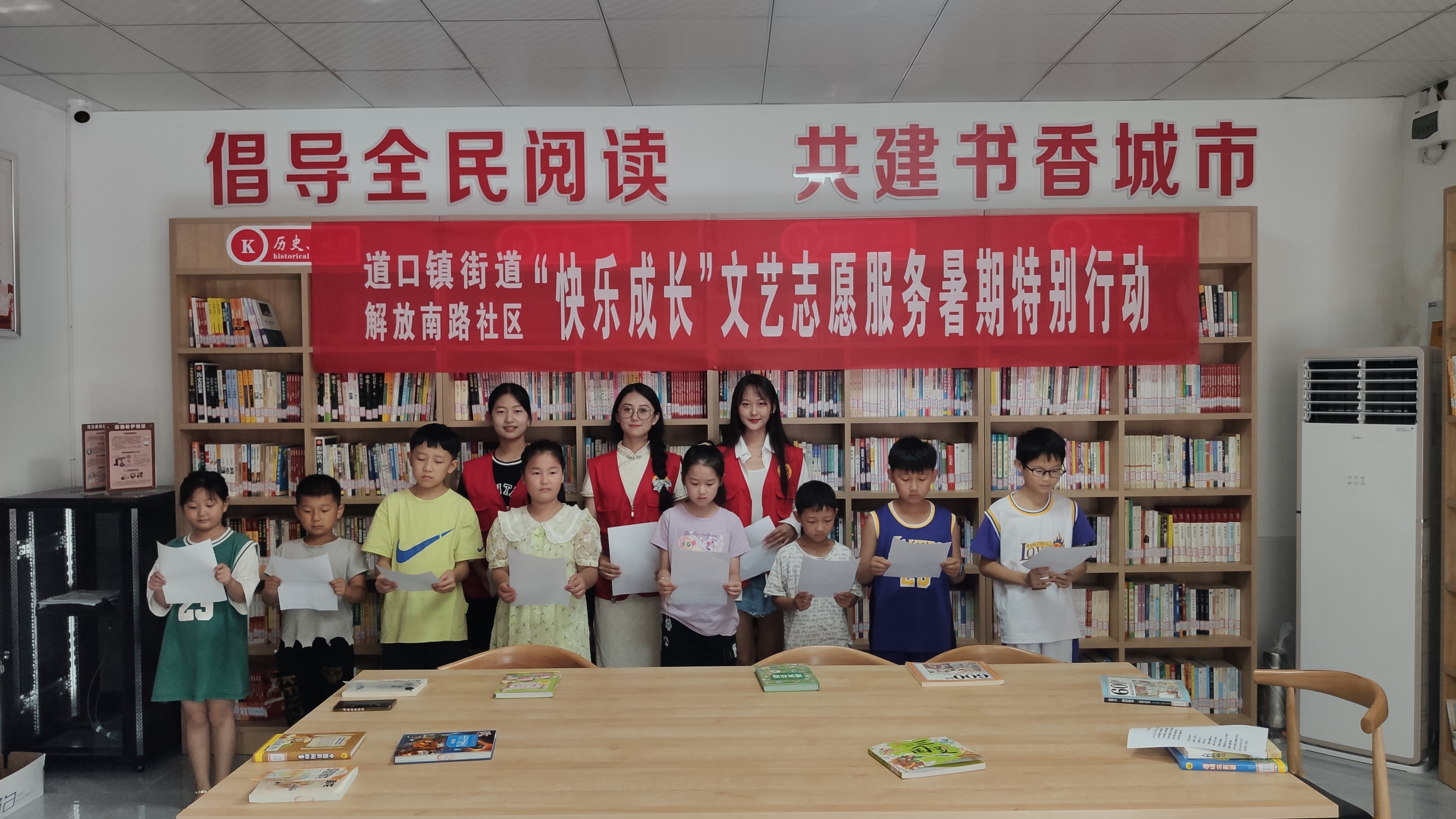 为弘扬中华优秀传统文化,传承中华美德,培育新时代好少年,7月29日,在道口镇街道新时代文明实践所和解放南路社区新时代文明实践站开展“快乐成长”文艺志愿服务暑期特别行动之“经典诵读 快乐暑假”主题活动。