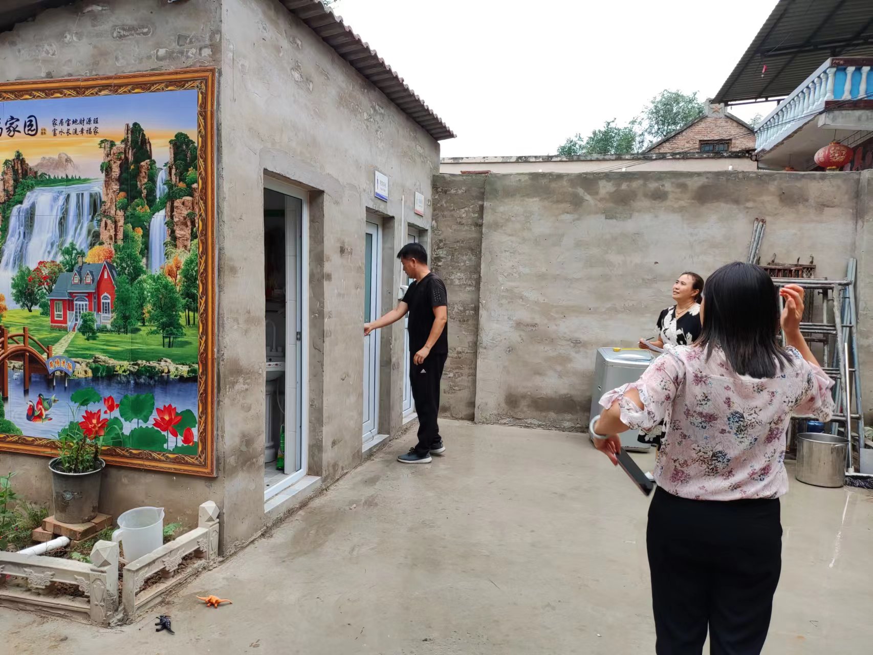 工作人员在已完成厕所改造的农户家中,实地查看改厕是否符合建设标准、厕所是否能正常通水使用,并详细记录每户验收情况。对验收中发现的问题,验收组现场列出整改清单,要求限期整改。验收同时,还向改厕户了解对改厕工作的满意度并征求意见,根据反馈的意见及时改进改厕工作。